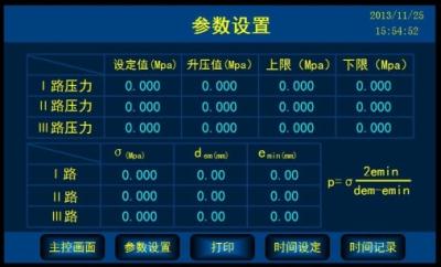 参数设置页面可以设置三路压力的设定值,升压值,上下限等。